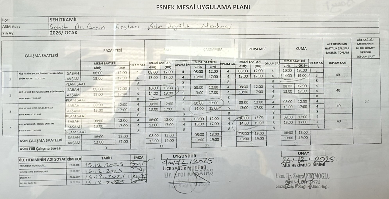Aile Sağlığı Merkezimizde Görev Yapan Aile Hekimlerimizin Listesi İçin